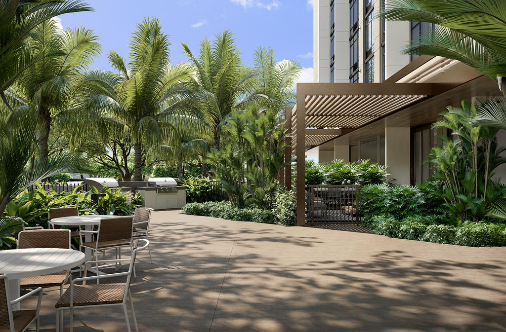 Ulana at Ward Village will have great amenities for you and your family to enjoy. There will be a park for the public to enjoy along Kamani Street. Inside Ulana, you will find all amenities on the ground floor of the building. The amenities will be found on the ground floor of the project, some of which includes: BBQ grills/Patio Cabanas alongside the Ulana lawn, a fitness room, shared working areas, children’s playground, and storages for bike/surfboards.